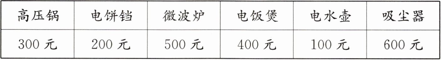 元?(2)王叔叔带的钱正好可以买其中的三件电器,王叔叔最少带了