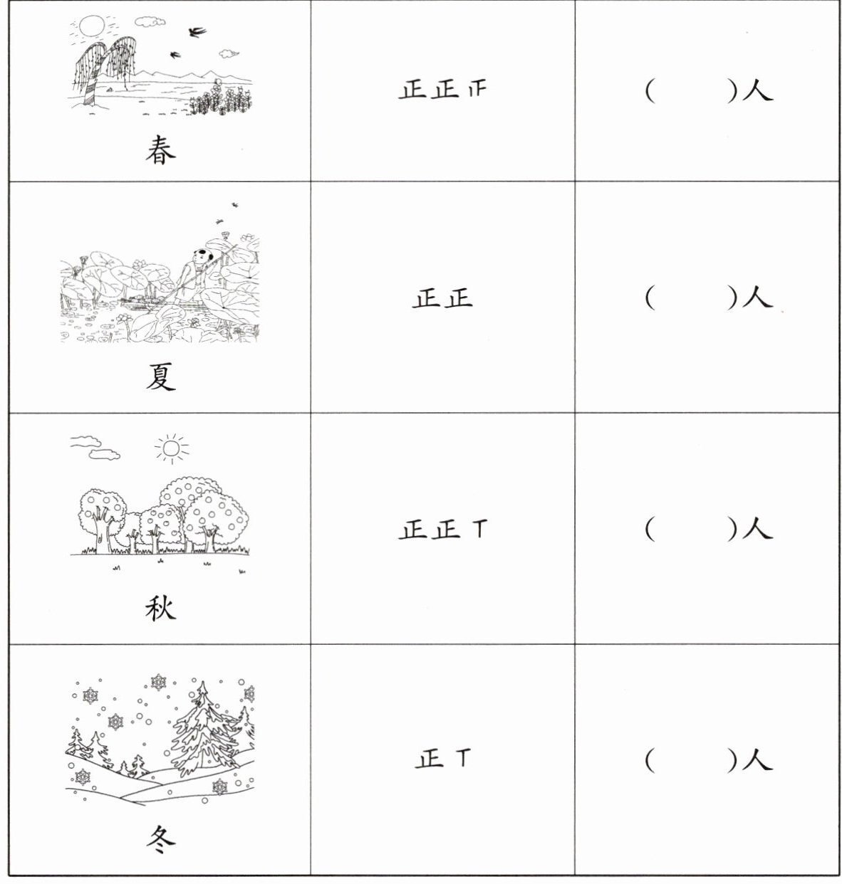 1. 数据收集整理。文文调查统计二(1)班同学出生在哪个季节。