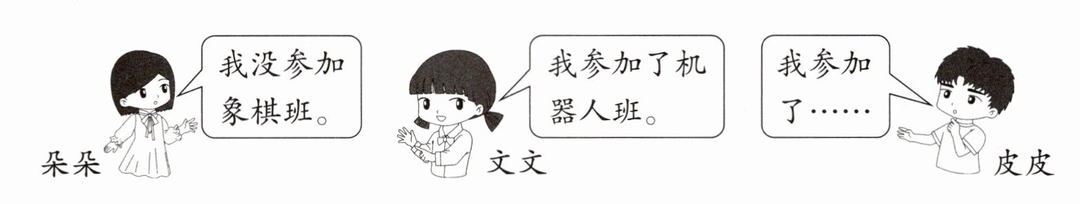 1. 朵朵、文文、皮皮分别报名参加了学校的机器人班、象棋班和画画班,每人都参加了一个兴趣班,且各不相同。