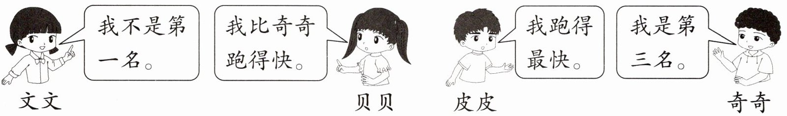 4. 文文、贝贝、皮皮、奇奇四人进行跑步比赛。
