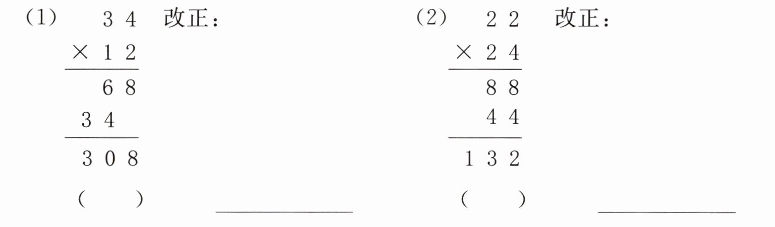 2. 下面的计算对吗?对的画“√”,错的画“×”,并把错误的改正过来。