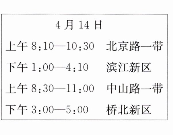 (2)桥北新区 下午 5:00 是 17 时。17 时 - 16 时 20 分 = 40 分