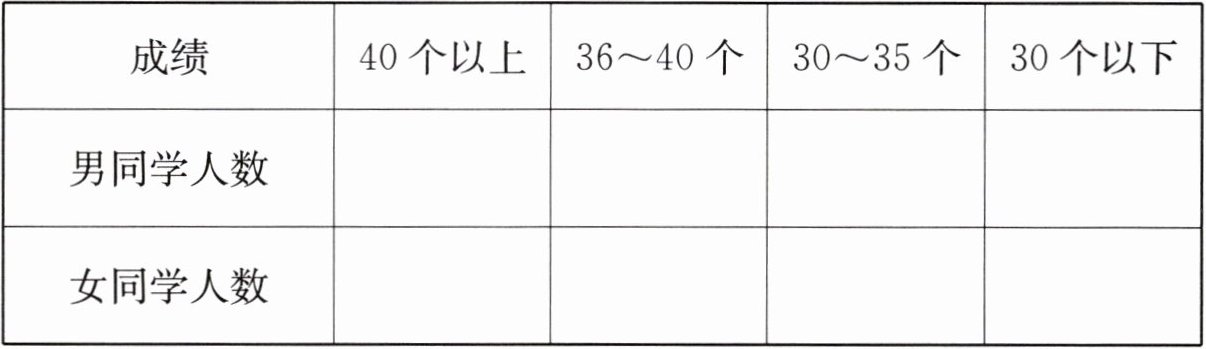 |成绩|40 个以上|36~40 个|30~35 个|30 个以下|