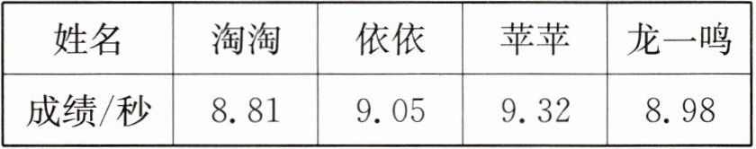 6. 四年级四名同学50m跑的成绩公布如下表: