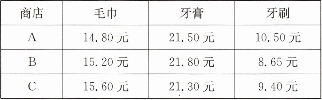5. 下面是三种日用品在A、B、C商店的价格情况。