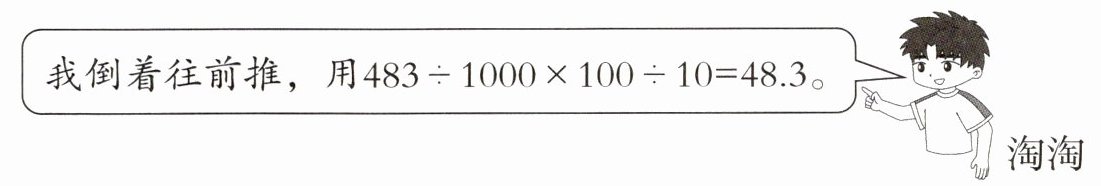 淘淘算得不对。$483÷1000×100÷10=4.83$