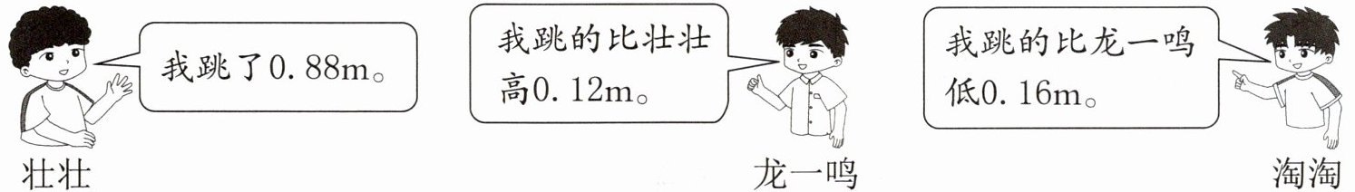5. 龙一鸣、壮壮、淘淘三人进行跳高比赛,结果如下。