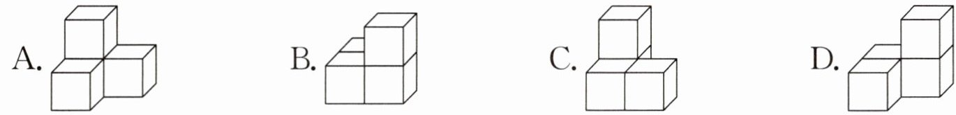 2. 依依、苹苹、淘淘、壮壮四位同学分别从前面、右面、后面、左面观察下面的立体图形,依依看到的图形是(