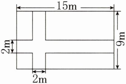 5. 如图是一块长15m、宽9m的长方形玉米地,中间铺了2m宽的十字形小路,种玉米的土地面积是多少平方米?