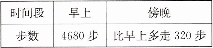 5. 步行是现在比较流行的健康锻炼方式之一,龙一鸣的妈妈通过微信计步器设定每天的步行任务是10000步。下面是她在一天的不同时间段步行的步数,她今天还有多少步没有完成?