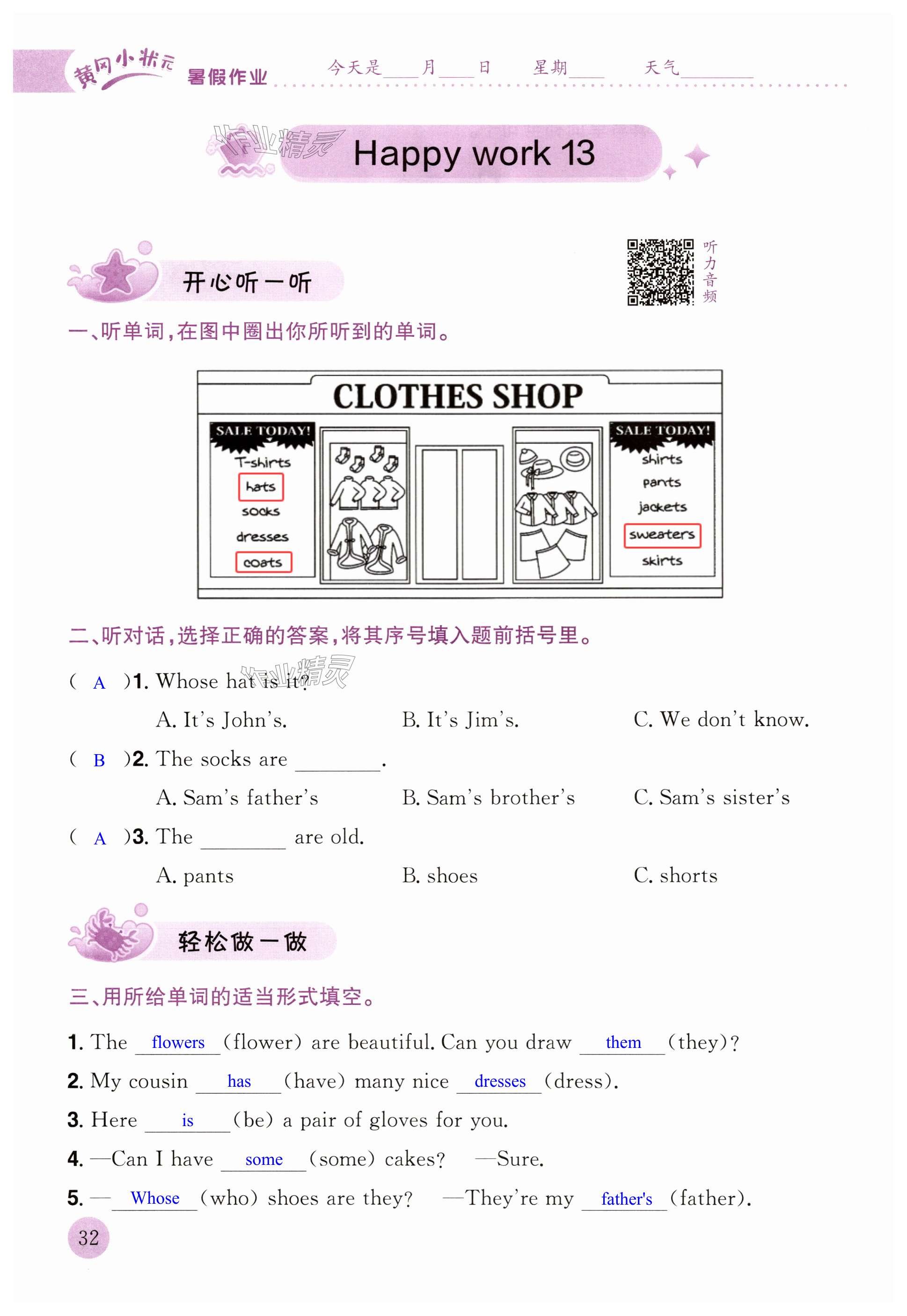 注:目前有些书本章节名称可能整理的还不是很完善,但都是按照顺序排列的,请同学们按照顺序仔细查找。练习册 2025年黄冈小状元暑假作业龙门书局四年级英语 答案主要是用来给同学们做完题方便对答案用的,请勿直接抄袭。