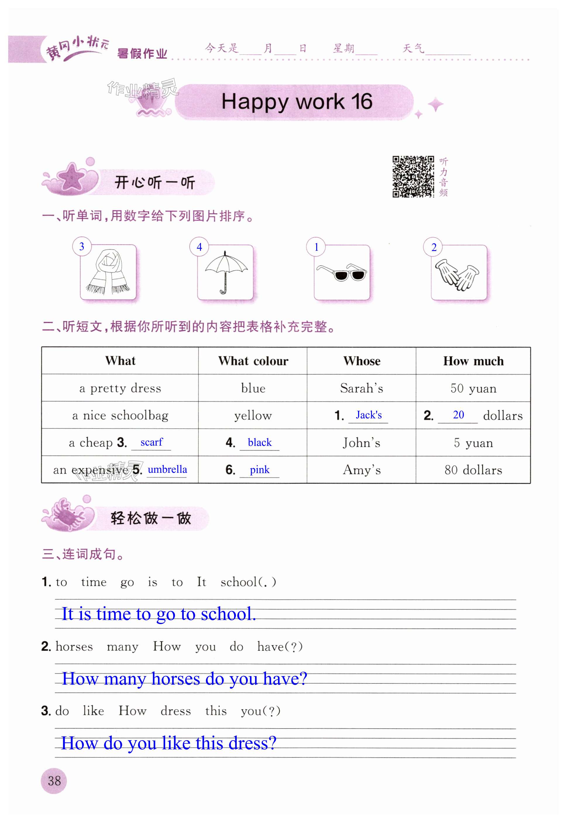 注:目前有些书本章节名称可能整理的还不是很完善,但都是按照顺序排列的,请同学们按照顺序仔细查找。练习册 2025年黄冈小状元暑假作业龙门书局四年级英语 答案主要是用来给同学们做完题方便对答案用的,请勿直接抄袭。
