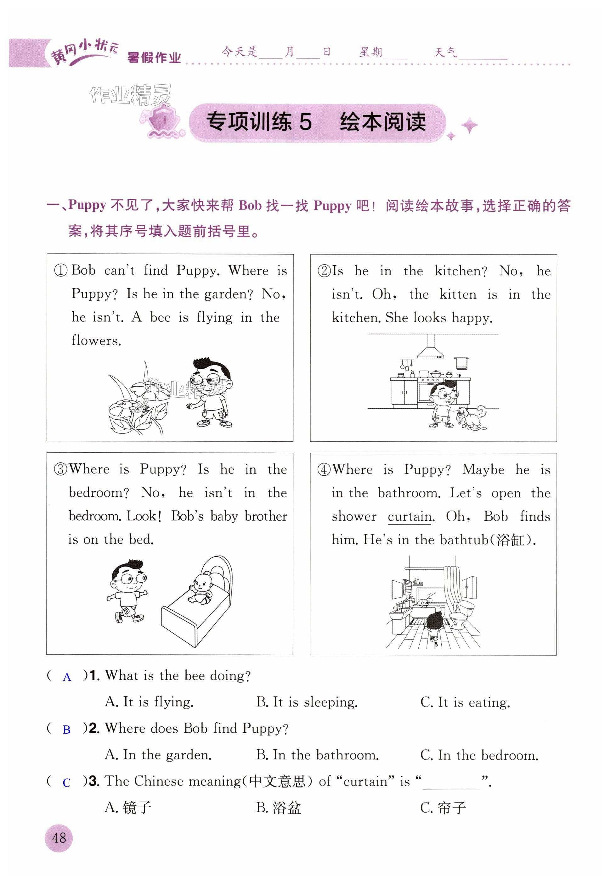 注:目前有些书本章节名称可能整理的还不是很完善,但都是按照顺序排列的,请同学们按照顺序仔细查找。练习册 2025年黄冈小状元暑假作业龙门书局四年级英语 答案主要是用来给同学们做完题方便对答案用的,请勿直接抄袭。