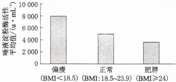 BMI 值越大,人体越胖,唾液淀粉酶活性越弱