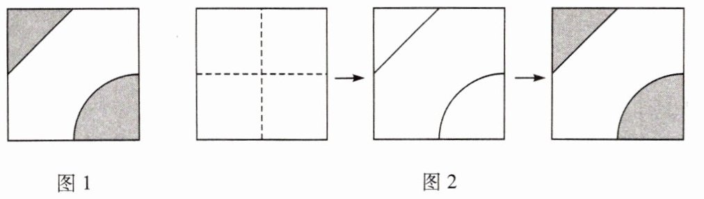 如图1是一块正方形瓷砖,分析发现这块瓷砖上的图案是按图2所示的过程设计的,其中虚线所在的直线是正方形的对称轴.