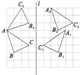 2. 如图,已知$\triangle ABC$的顶点都在格点上,直线l与网格线重合(每个小正方形的边长均为1个单位长度).