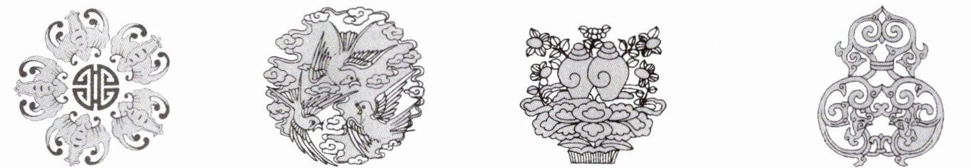 蝙蝠纹——福气 喜鹊纹——喜庆 宝瓶纹——平安 葫芦纹——