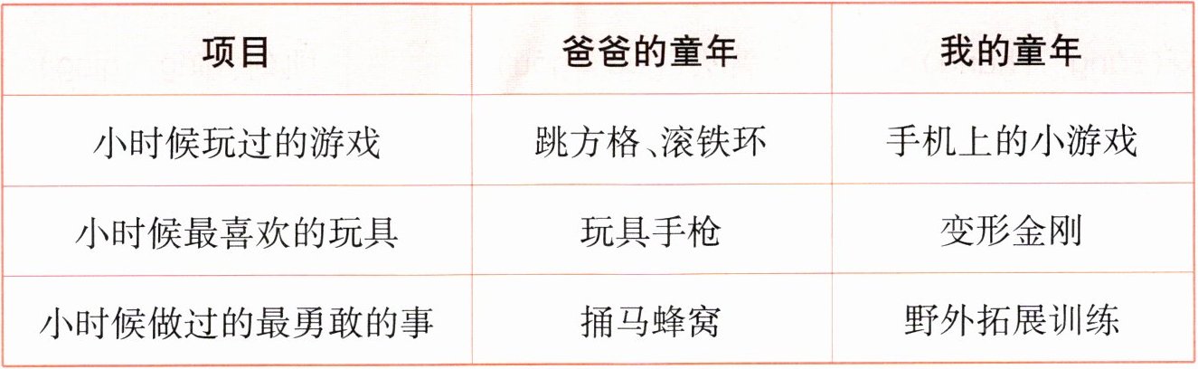 让我们走进大人的世界,了解他们小时候都玩过哪些游戏,最喜爱的玩具是什么……和你的童年比一比,说说他们童年的游戏有什么特点。