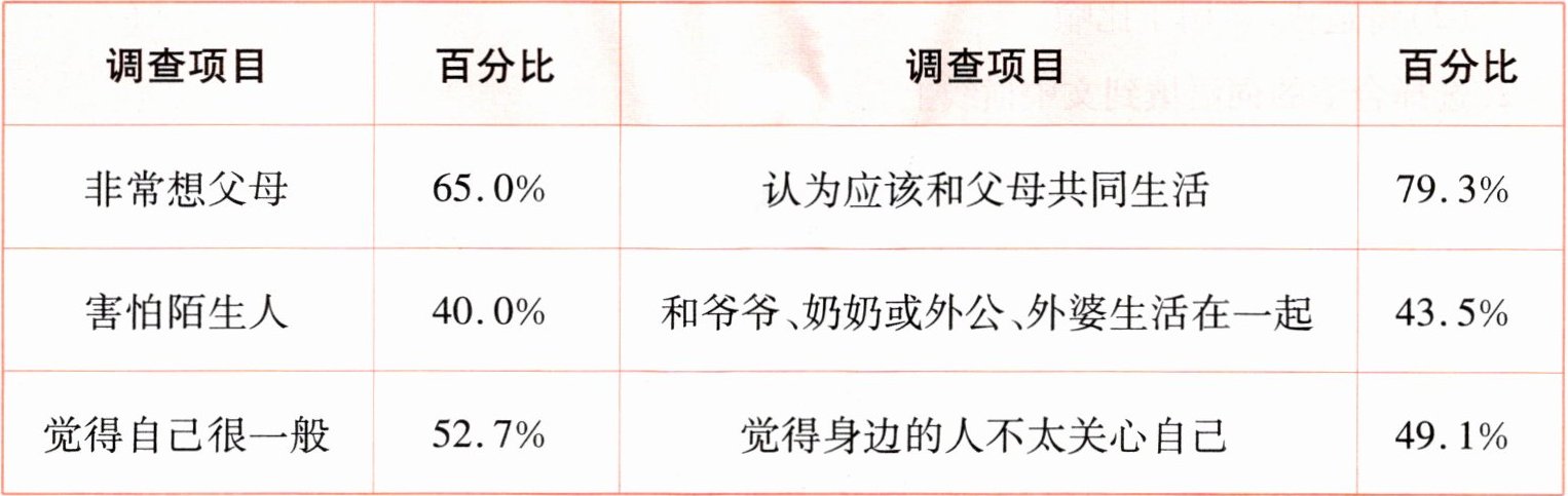 四、在中国,有这样一群儿童,父母为了生计外出打工,将他们留在了农村。这个特殊群体被称为留守儿童。下面是某省关于留守儿童问题的部分调查数据。