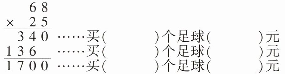 9. 学校买了25个足球,每个68元。请根据下面的算式填空。