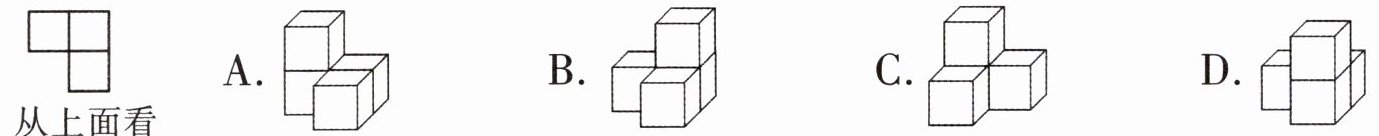 4. 用4个完全相同的小正方体搭成一个立体图形,从上面看到的形状如图所示,则这个立体图形的搭法不可能是(