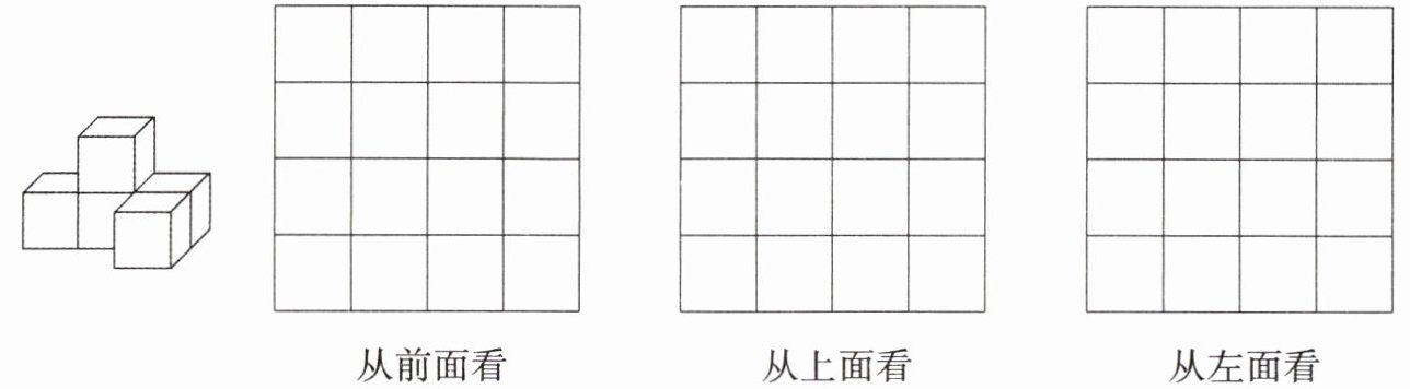 从左面看:先画底层$2$个并排的小正方形,再在左边小正方形的正上方画$1$个小正方形。
