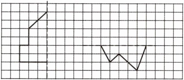【解析】:根据轴对称图形的性质,对称轴两侧的对应点到对称轴的距离相等。先找出已知图形的关键点,然后根据对称轴确定这些关键点的对称点,最后依次连接对称点即可画出图形的另一半。