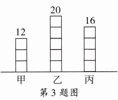 3. 如图,甲、乙、丙三人收集的邮票张数分别为12张、20张和16张,乙给甲(