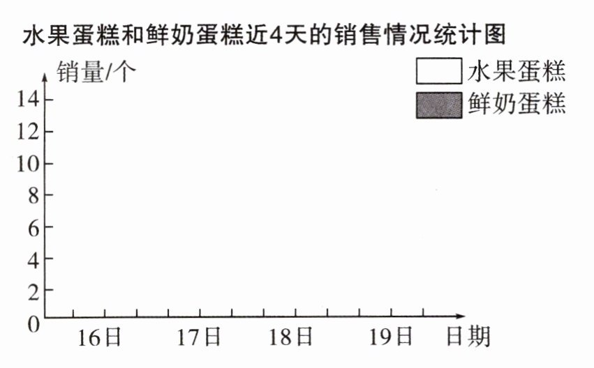 水果蛋糕和鲜奶蛋糕近4天的销售情况统计图 2.17 3.19 4.示例:最近4天平均每天销售多少个水果蛋糕?(8+12+11+9)÷4=10(个)