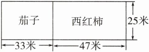 5. 张爷爷的菜园里有一块菜地分别种了茄子和西红柿(如下图),这块菜地的面积是多少平方米? 在这块菜地的四周挖条水渠,这条水渠长多少米?(水渠宽度不计)
