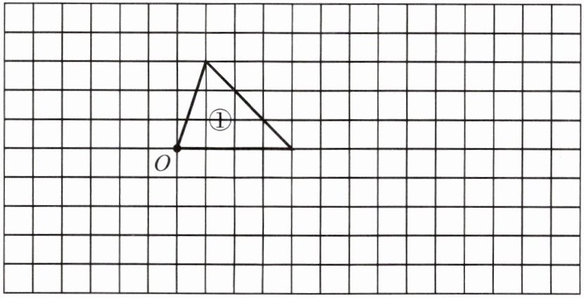 【答案】:按照上述方法画出②号(绕点$O$逆时针旋转$90^{\circ}$后的图形)和③号(向右平移$7$格后的图形)。(由于是动手操作题,无法用文字精确呈现图形,学生需根据旋转和平移的性质在给定方格图中完成绘制)