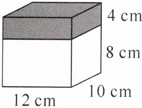 9. 一个长方体的长、宽、高分别是 12 厘米、10 厘米、8 厘米,如果高增加 4 厘米(如右图),表面积增加(