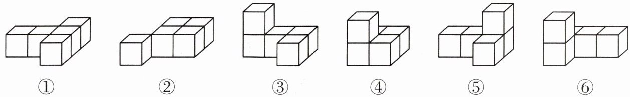 6. 用 5 个同样的小正方体分别摆成下面的几何体,按要求把序号填在括号里。
