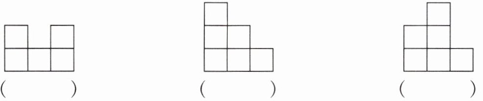 1. 下面的图形是乐乐从正面看到的,他看到的分别是哪个几何体?请将序号填在括号中。