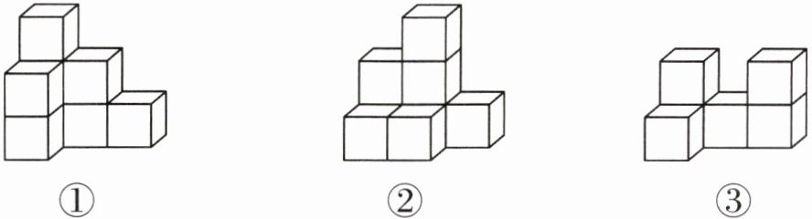 下面三个几何体都是由棱长为1 cm的小正方体摆成的,仔细观察,回答下面的问题。