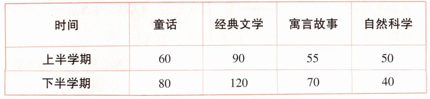 示例二:下半学期借阅寓言故事书的人数比借阅自然科学书的人数多 30。(答案合理即可)