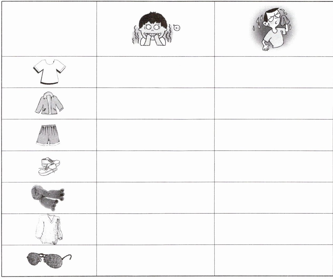 It's cold. So I put on my coat, my shoes, my sweater and my scarf.