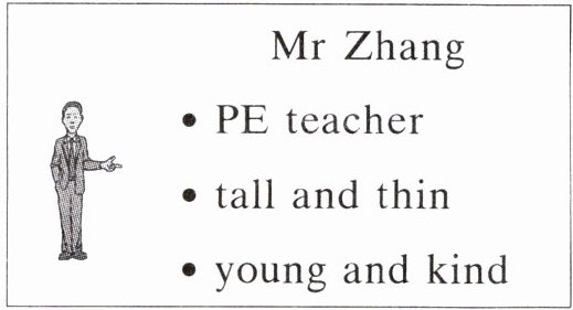 1. My PE teacher is Mr Zhang, tall, thin, young