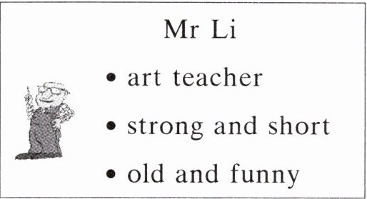 2. My art teacher is Mr Li, strong, short, funny