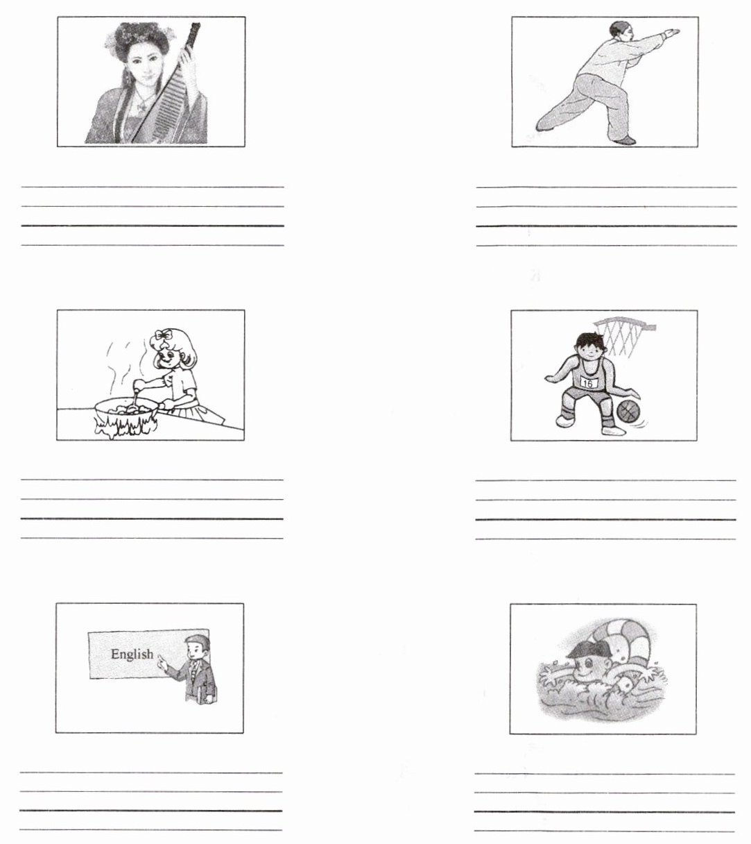 play the pipa;do kung fu;cook food;play basketball;teach English;go swimming