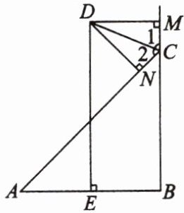 10. 已知:如图所示,$DE为\triangle ABC的边AB$的垂直平分线,$CD为\triangle ABC$的外角平分线,与$DE交于点D$,$DM\perp BC的延长线于点M$,$DN\perp AC于点N$。求证:$AN= BM$。