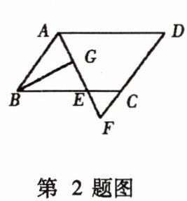 2. 如图,在$□ ABCD$中,$AB = 6$,$AD = 9$,$\angle BAD的平分线交BC于点E$,交$DC的延长线于点F$,$BG\perp AE$,垂足为$G$,$BG = 4\sqrt{2}$,则$\triangle CEF$的周长为(