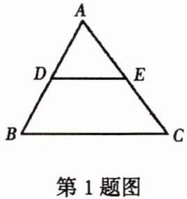 1. 如图,已知$\triangle ADE与\triangle ABC的相似比为1:2$,则$\triangle ADE与\triangle ABC$的面积比为(