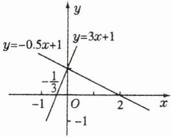 5. 观察右图,可以得出不等式组$\left\{\begin{array}{l} 3x+1>0,\\ -0.5x+1>0\end{array}\right. $的解集为(