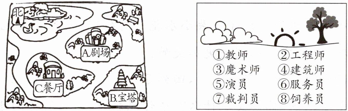 1. 职业 示例:理发师 营业员 2. ③ ⑤ ⑥ ② ④