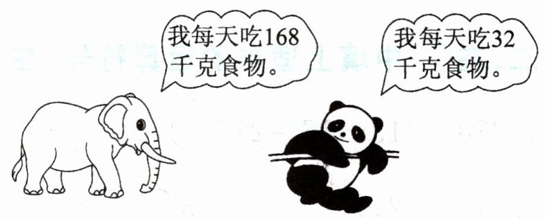 2. 动物园一个星期需要给它们准备多少千克食物?