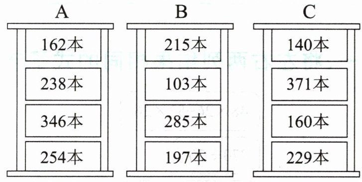 1. 算一算,每个书架有多少本书?