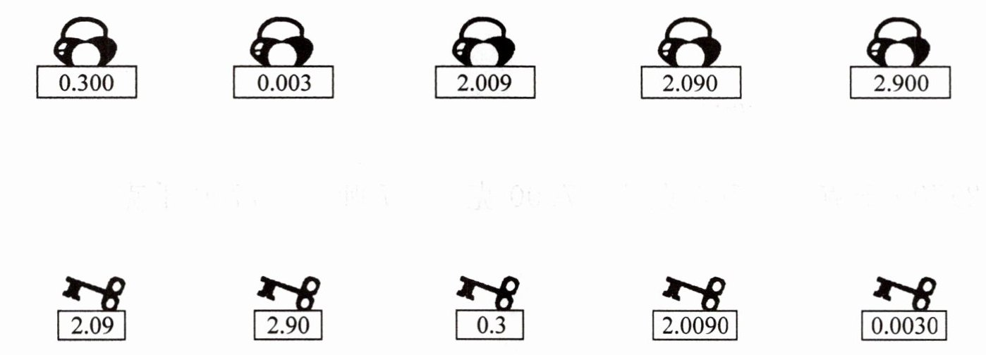 【答案】:$0.300$与$0.3$相连;$0.003$与$0.0030$相连;$2.009$与$2.0090$相连;$2.090$与$2.09$相连;$2.900$与$2.90$相连。