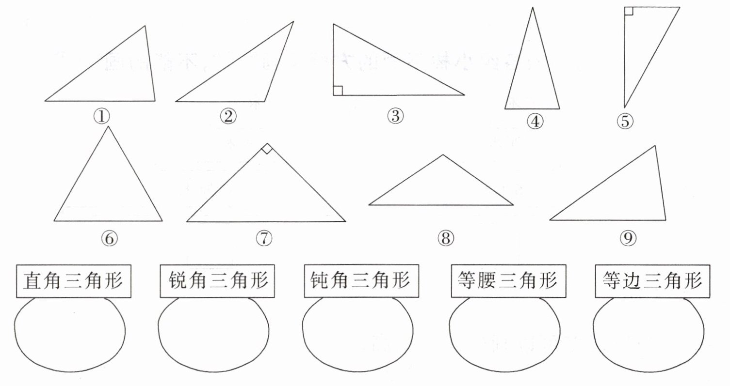 第二个三角形(等腰三角形):用三角板的一条直角边与底边重合,另一条直角边经过顶点(因为等腰三角形底边上的高、中线、角平分线三线合一),沿着这条直角边从顶点到底边画线段,即为高。