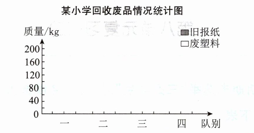 二、某小学回收废品活动的成绩显著。请你先帮助他们把统计表填写完整,再把统计表中的数据用条形统计图表示出来